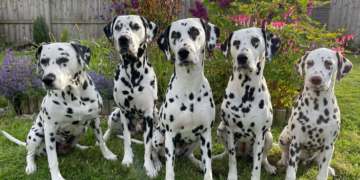 I am currently owned by 5 adorable Dalmatians: my first home bred daughter of Chelsea and Diesel, Dalamanti Ice Ruby JW ShCM VW (Jovi), Dalamanti Ruby Raider ShCM (Kiki), daughter of Jovi and the lovely Deny who's owned by Andrew Pratt, then we kept Dalamanti Hidden Glory (Calli), daughter from Jovi's final litter sired by Cosmo who is bred by Alex Cobb from the successful Kalokairie kennel. In 2020 I bred my first ever 3rd generation litter from Kiki and kept her son, Dalamanti Caesars Palace (Cooper). The next addition to the pack is my liver boy Yogi, Dalamanti Duke’s Legend JW, from Kiki and Champion Harlow. I didn’t think I’d get another litter out of Kiki as she’d missed twice, but a final attempt I decided to use the fabulous boy Harlow, and produced a fantastic litter where this boy just had to stay. My first liver male. Our newest addition is Goose, Dalamanti’s Guardian Angel. He is by my 2 home bred babies Calli and Yogi. Tragically we lost his gorgeous mum Calli during an emergency C section. I will never recover from this and I am no longer breeding litters myself due to the trauma this caused. Goose will be so special to us as he has a part of her. I will cry for Calli and miss her every day forever.
