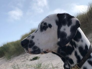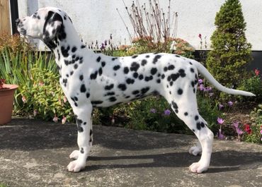 Kiki had her first litter in 2020 (mated pre-lockdown) producing 8 stunning babies to Diesel, all were full hearing and no blue eyes, one liver boy had a patch. From this litter I kept a mini-Diesel and called him Cooper, Dalamanti Caesars Palace. He is doing well in the ring, placing well at championship show level and winning his stud book number qualifying for Crufts for life. He has also won best of breed and groups at open show levels on many occasions.