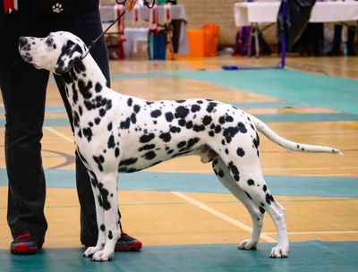 20th August 2021 - Dalmatian Club of Scotland Championship Show - 2nd Junior Dog, 1st Yearling Dog, 1st Novice Dog - Judge Christina Pickup - Critique: "Good overall basic build, make and shape, deep chest and with lovely head and dark eye. More heavily decorated black with lovely coat condition. More substantial type than 1. Extremely well muscled but carrying too little weight for me."