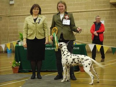 15th March 2014 - Cheviot & Berwick Canine Society - 1st Dalmatian Open, Best Of Breed, 3rd Av Minor Puppy Dog/Bitch - Dalamanti Ice Ruby - Judge Mr David Robbins - critique: "1st Barrett's Dalamanti Ice Ruby 7 month bitch, feminine head, with good neck into nice top line and well balanced. Nicely ribbed and moved out well for one so young."